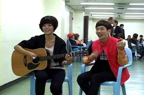 동영상을 보면 지난 6일, 케이블 음악채널 엠넷의 '엠카운트다운' 대기실에서 즉석 노래를 부르는 웨일과 조권의 모습이 담겨 있다.