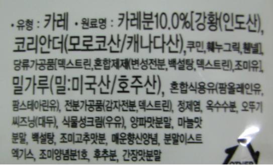 복합원재료를 이용하는 카레의 경우 "카레분11.4%[강황(인도산)31.95%. 코리안더(모로코산/캐나다산), 쿠민, 훼누그릭, 휀넬, 로즈마리0.88%, 월계수잎 0.88%]로 기재되어 오히려 성분 함유량에 대한 혼란을 가중시키는 경우가 많았다.