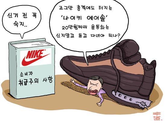 세계적인 스포츠 전문브랜드 나이키의 히트상품인 에어운동화에 대한 소비자들의 불만이다.