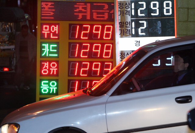 휘발유를 ℓ당 1298원에 파는 서울 영등포 주유소 3곳에 자동차와 오토바이가 벌떼 처럼 몰리고 있다.