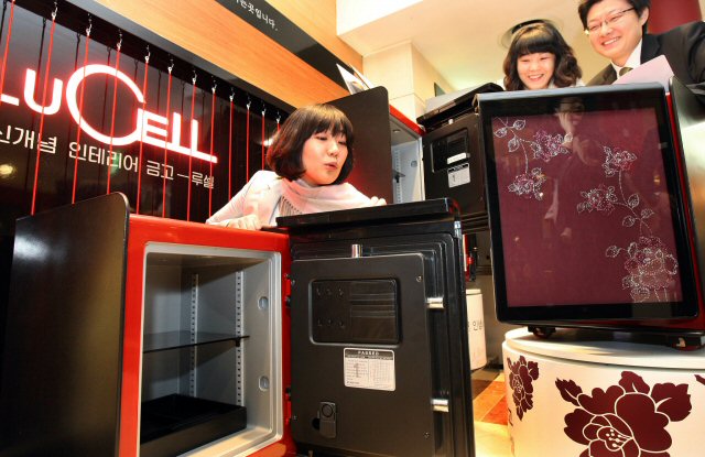 가정용 소형 금고는 예전의 투박하고 무거운 '금속덩어리'가 아니라 화려한 컬러와 디자인, 터치버튼으로 패션이 한층 강조됐다. 전면 판넬에 스와로브스키 크리스탈 원석까지 박아 화려함을 한층 뽑낸 것이 특징(사진=연합뉴스).