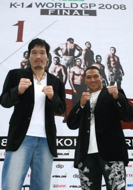 URL복사 기사공유하기 스크랩 프린트 메일보내기 글씨키우기 일본 도쿄 신주쿠 역 앞 광장에서 열린 'K-1 월드 그랑프리 2008 파이널 8' 기자회견에서 최홍만과 레이 세포가 6일 격돌을 앞두고 파이팅 포즈를 취하고 있다. 한편, 이번 대회는 케이블채널 XTM에서 12월 6일 오후 5시부터 생중계된다. (사진 = 연합뉴스) 저작권자 © 소비자가 만드는 신문 무단전재 및 재배포 금지 스포츠 연예팀 다른기사 보기 URL복사 기사공유하기 주요기사 편의점도시락, 하루나트륨 권장량 70% 육박...소금 함량 많은 제품은? [소소한 경영] 오비맥주, 재생 플라스틱 사용 2배 확대 이재용 주식가치 2.5배, 최태원·정의선 2배 껑충 '好好 '생산적 금융' 대전환 어떻게?...KB·신한·하나·우리은행 4사4색 국민·하나카드, 대면 중도상환수수료율 2% 최고 가상자산 하락 직격탄 맞은 업비트·빗썸, 법인 시장 공략 잰걸음