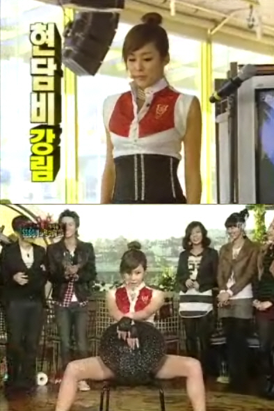 이날 현영은 ‘너를 보여줘’ 코너에서 손담비에게 직접 배운 춤과 손담비가 무대에서 입고 나온 의상은 물론 백대서들까지 동원해 화려한 무대를 연출했다. 특히 ‘미쳤어’의 하이라이트인 의자춤을 선보일때 주위 출연자들은 감탄을 자아냈다.