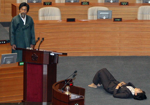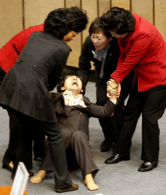 URL복사 기사공유하기 스크랩 프린트 메일보내기 글씨키우기 "진정해...이왕 이렇게 된 걸 어떻게 하겠어?" 한나라당 여성의원들이 12일 밤 감세법안 처리를 반대하며 의장석을 점거했던 민노당 이정희 의원을 끌어내고 있다. 거의 초상집에서 유가족 처럼 울부 짓고 있는 이 의원을 한나라당 여성 의원들이 달래고 진정시키는 형국이다. 결국 끌여 내려 온 뒤 망연 자실한 상주 처럼 쓰러져 있다.(사진=연합뉴스) 저작권자 © 소비자가 만드는 신문 무단전재 및 재배포 금지 백진주 기자 다른기사 보기 URL복사 기사공유하기 주요기사 이억원 금융위원장 "금감원 통제 필요성 분명... 실효적 방식 고민 중" 보이스피싱 분석 AI 플랫폼, 출범 후 3개월 간 186.5억 원 보이스피싱 피해 막아 “멘토 같은 분”...김동연 지사, 이해찬 전 총리와 남다른 인연 겨울철 전기장판 일반 폼·라텍스 매트리스와 사용하면 화재 위험성 높아...예방 대책 ‘필수’ 하이트진로 필라이트, 지난해 3억4000만 캔 출고 '역대 최대' 농심 신라면, 美 간판 토크쇼 '지미 키멜 라이브'에서 "WOW"