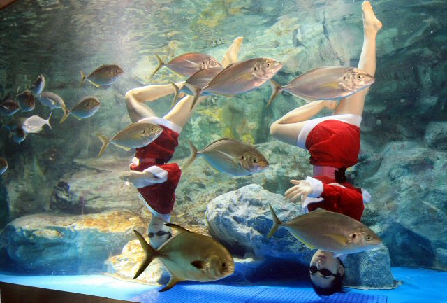 URL복사 기사공유하기 스크랩 프린트 메일보내기 글씨키우기 크리스마스를 앞두고 23일 서울 여의도 63씨월드에서 산타클로스 복장을 한 여성 연기자들이 대형 수족관에 들어가 물고기들과 함께 환상적인 '캐럴 싱크로나이즈드 쇼'를 펼치고 있다. 캐럴 싱크로나이즈드쇼는 발레의 우아한 동작을 느낄 수 있는 수중공연과 산타복장의 연기자가 캐럴에 맞춰 수중퍼포먼스를 펼치는 2가지 레퍼토리로 진행된다.(사진=연합뉴스) 저작권자 © 소비자가 만드는 신문 무단전재 및 재배포 금지 송숙현 기자 다른기사 보기 URL복사 기사공유하기 주요기사 엔씨소프트 리니지W, 신규 월드 '아리아' 사전 캐릭터 생성 진행 크래프톤, '프로젝트 제타' 커뮤니티 테스터 모집 벤츠, 고성능 GLS 모델 첫 선...최대출력 612마력 'AMG GLS 63 4MATIC+' 출시 다올투자증권 지난해 순이익 423억 원…흑자전환 성공 LG생활건강, 지난해 영업이익 1707억 원 62.8%↓..."고성장 채널 집중 육성" 연간 영업익 국내 '톱' 꿰찬 SK하이닉스, HBM 업고 날았다
