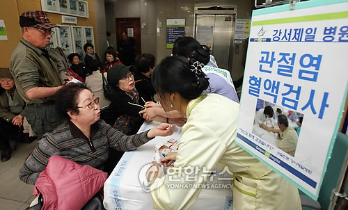 <만 60세 이상의 노인들이 관절염 무료검진을 받고 있다. 위 사진은 기사내용과 무관함>