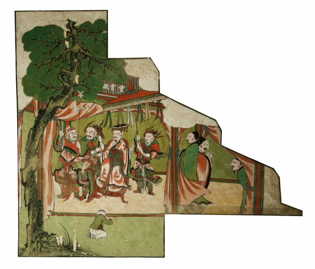경남 양산 통도사 용화전(龍華殿) 벽화에서 발견된 '서유기' 그림 7장면이 발견돼 화제다.이들중 하나인 봉선군모천지우도(鳳僊郡冒天止雨圖). 서유기 87회 내용 중 하늘을 모독한 죄로 가뭄에 든 천축 변방의 봉선군(鳳僊郡)에 비를 내리게 해주겠다고 약속한 손오공이 천궁에 올라가 옥황상제를 만나는 장면을 묘사하고 있다.