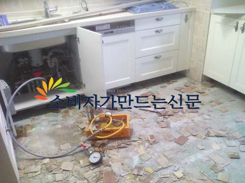 당시 담당직원 역시 요청을 받아들여 수리를 했지만 다시 한 번 찾은 이 씨 집 온돌바닥은 습기가 차서 썩어 있었으며 여전히 거실과 방, 주방의 바닥 색깔이 모두 틀리게 시공돼 있었다. 거의 10년 묵은 아파트 뺨 칠 정도였다.