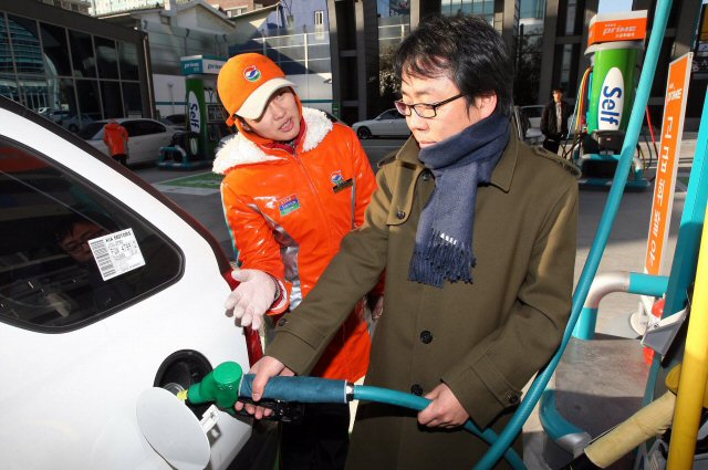 경기가 꽁꽁 얼어 붙고 있는 가운데 SK에너지.GS칼텍스.에스오일등의 셀프 서비스 주유소들이 증가하고 있다. 14일 서울 강남구 차관 아파트 사거리 인근에 생긴 셀프 서비스 주유소에서 직원들이 손님들에게 주유방법에 대해 설명하고 있다.