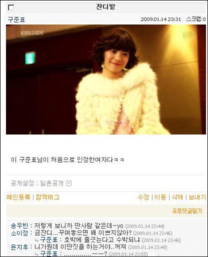 첫 번째 사진은 '잔디밭'이라는 제목과 함께 금잔디 역으로 열연 중인 구혜선의 사진을 올려 놓고 ‘이 구준표님이 처음으로 인정한 여자다 ㅋㅋ’란 말로 네티즌들의 시선을 사로잡았다.
