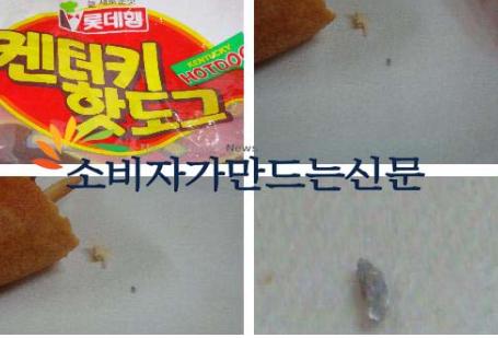 #사례 1 - 인천 불노동의 정 모 씨는 지난해 11월 24일 아침식사로 롯데 햄의 즉석 핫도그를 먹던 중 딱딱한 이물질을 씹었다.순간 어금니 쪽의 통증이 심해 뱉어보니 쌀알크기의 쇳조각이 확인됐다.