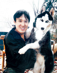 1998년 자신이 기르던 개와 찍은 사진이다.