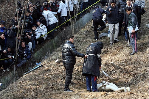 암매장 장소는 도로에서 3∼4m 내려간 비탈면으로 20㎝ 깊이였고 재연에 사용된 마네킹은 양손이 뒤에서 스타킹으로 묶인 상태였다.