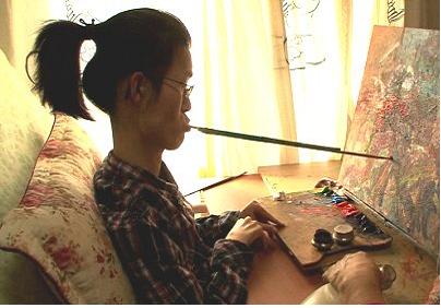 그런데 붓을 움직이고 있는 것은 그의 손이 아니라 입이다. 팔 근육에 힘이 없어 붓을 잡고 움직이기가 쉽지 않은 동호씨는 오직 그림을 그리겠다는 일념으로 오늘도 손 대신 입으로 붓을 문다.