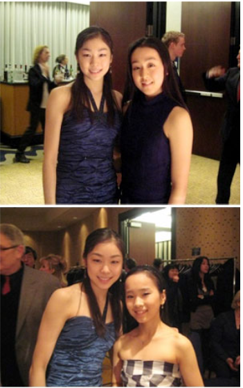 김연아는 어깨가 드러나는 푸른색 드레스를 입고 김나영, 김민정 등 국내 선수들은 물론, 동갑내기 라이벌 아사다 마오 등과 함께 사진을 찍었다.