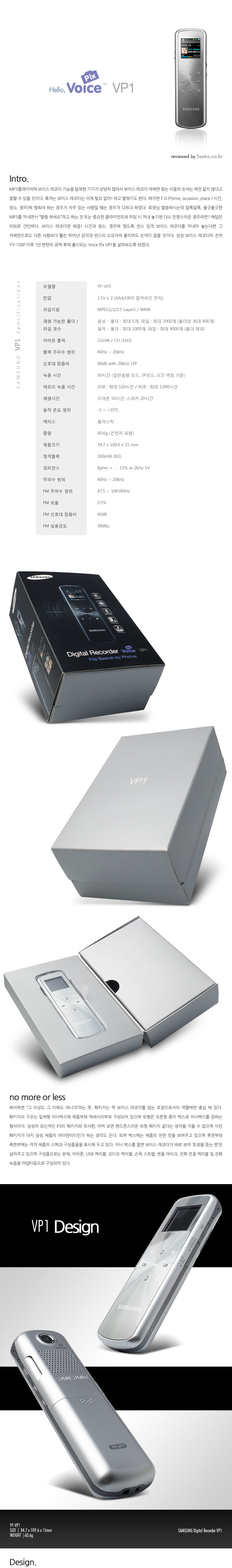 VP1은 전작 보다 길이는 약 1cm정도 길어졌지만 두께는 3mm정도 얇아 졌으며 얼핏 보면 길쭉한 스틱형의 MP3 플레이어를
