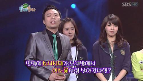 이날 소녀시대는 '소녀시대가 노래방에서 이소룡처럼 살아갔다면'이라는 가정아래 유리는 “번호 눌러러러러, 아뵤”를 말하며 이소룡을 흉내냈고 수영은 번호를 외치자 효연이 “짜릿짜릿 몸이 떨려 지지지지, 아오”라며 이소룡의 성대모사하는 등 끼를 발산했다.