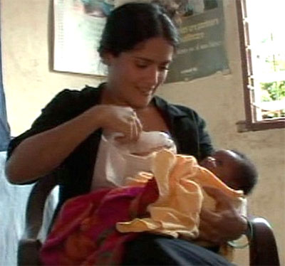 유니세프 대사로 활동 중인 섹시 여배우 셀마 헤이엑의(42)의 수유장면이 ABC방송을 통해 보도돼 화제가 되고 있다.