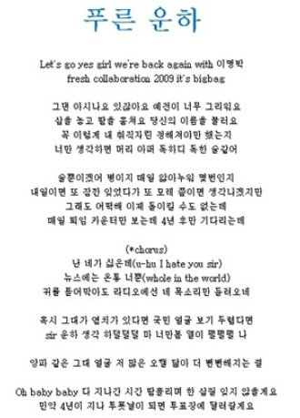 이 부대변인은 “아무래도 빅뱅이 걱정될 뿐이다”며 “빅뱅에겐 애국랩송보다 ‘푸른운하’가 더 어울릴 듯하다”고 꼬집었다.