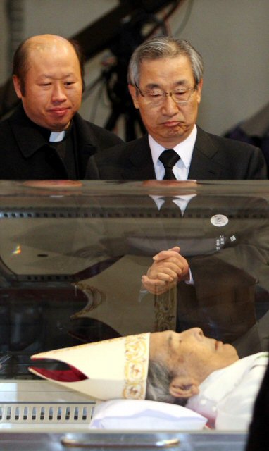 18일 오전 김수환 추기경의 빈소가 마련된 서울 중구 명동성당을 찾은 이강국 헌법재판소장이 조문하고 있다.