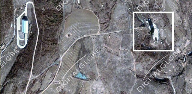 이를 근거로 북한이 수일 안에 대포동 2호 탄도미사일이나 백두산 2호 위성 발사체의 발사 준비를 마칠 가능성이 있다고 분석했다.(사진 출처=디지털 글로브).