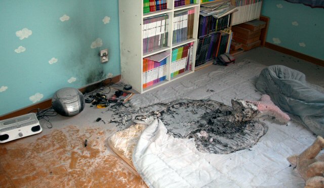 폭발한 건전지는 2개씩 붙어 주변 이불과 장판에 떨어져 일부를 태웠지만 인명피해는 발생치 않았다. 삼성전자.LG전자 노트북PC 배터리등 국내 회사 제품도 폭발 사고가 가뭄에 콩나듯이 가끔 발생하고 있으나 중국산 제품은 시도 때도 없이 터져 소비자들 사이에 불신감과 불만이 고조되고 있다. (사진=연합뉴스)