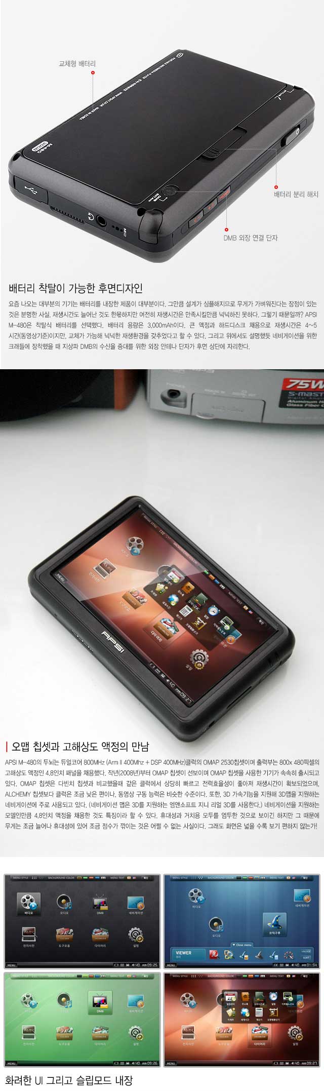 부팅시간이 조금 길게 느껴진다고 아쉬워하지 말자. APSI는 슬립모드를 지원하기 때문에 부팅 필요없다. 설정 메뉴의 전원