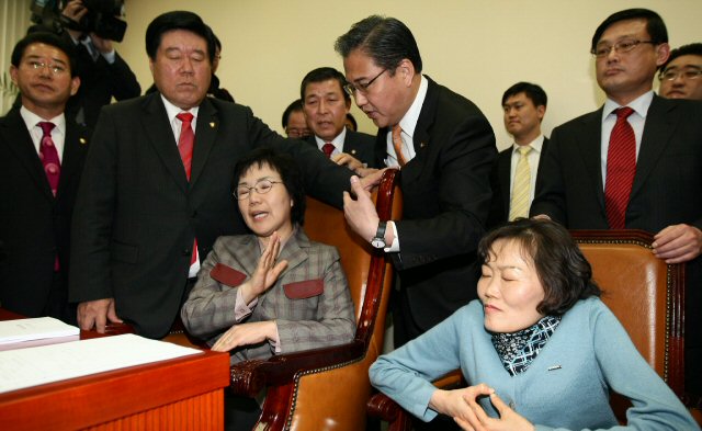 URL복사 기사공유하기 스크랩 프린트 메일보내기 글씨키우기 한나라당의 미디어 법 기습상정으로 정국이 급랭한 가운데 26일 국회 외교통상통일위원회 회의장에서 박진 외통위원장이 위원장석을 점거하고 있는 민주당 이미경 사무총장을 비롯한 민주당, 민노당 의원들에게 위원장석에서 비켜줄 것을 요구하고 있다.(사진=연합뉴스) 저작권자 © 소비자가 만드는 신문 무단전재 및 재배포 금지 조창용 기자 다른기사 보기 URL복사 기사공유하기 주요기사 SK텔레콤, '1인당 10만원' 보상안 불수용..."재무적 부담 감당 어려워" 위메이드, 원화 스테이블코인 전용 ‘스테이블넷’ 테스트넷 공개 크래프톤, ‘배틀그라운드 모바일’·‘킹 오브 파이터즈’ 컬래버레이션 진행 하나증권 지난해 순이익 2120억 원…전년 대비 6% 감소 금융투자협회 조직개편 단행, K자본시장본부·대외협력부 신설 함영주 하나금융 회장 "비은행 수익성 회복되면 ROE 12% 도달 가능"