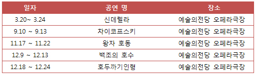 ‘호두까기 인형’은 매년 평균 유료 관객 90%를 넘기며, 크리스마스의 단골레퍼토리로 자리 잡은 공연이다. 화려한 음악과 의상, 크리스마스이브의 경쾌함이 잘 묻어나는 작품으로, 가족과 연인들에게 즐거운 크리스마스의 추억을 전해 줄 수 있을 것이다.