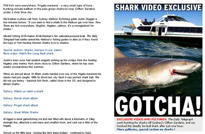 몸길이가 무려 4m에 이르는 이 식인 상어는 11일 시드니 항구에서 해군 잠수병 폴 드 젠더를 첫번째 희생자로 삼아 손과 다리를 잃게 했다.