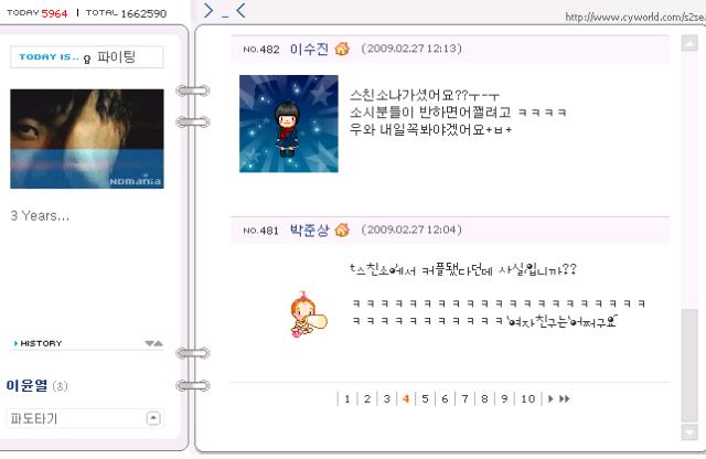 이 소식을 전해들은 네티즌들은 “재미있게 볼게요. 이윤열 선수 나오는 날은 '스타골든벨'보다 스친소를 봐야겠군요” “윤열이형 노래 부르는 모습 나오겠네요. 리얼스토리에서 윤열이형 노래 부르는 모습이 생각나네요. 그땐 노래 진짜 잘 불렀는데" "스친소에서 소녀시대 분들이 반하면 어쩌려고” “여자친구는 어떻게 하라고"라는 등 뜨거운 관심을 보이고 있다. (사진= 이윤열미니홈피)