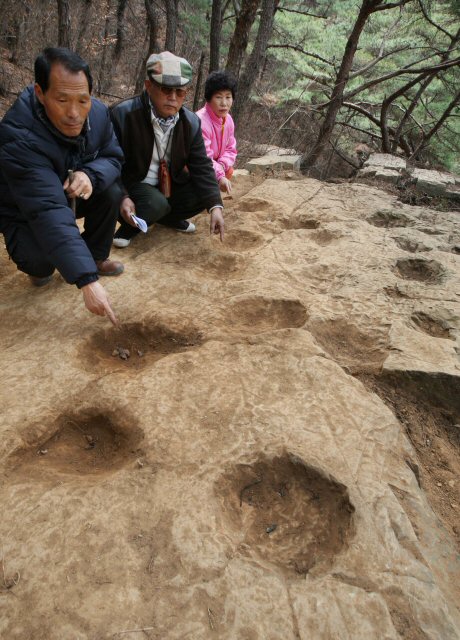 이번에 발자국이 발견된 곳에서 불과 80m 가량 떨어진 바위에서는 2005년에도 비슷한 크기의 공룡 발자국 100여개가 무더기로 발견돼 학계에서는 이 지역 일대가 공룡들이 집단적으로 서식했을 가능성이 높은 것으로 보고 있다.(사진=연합뉴스)