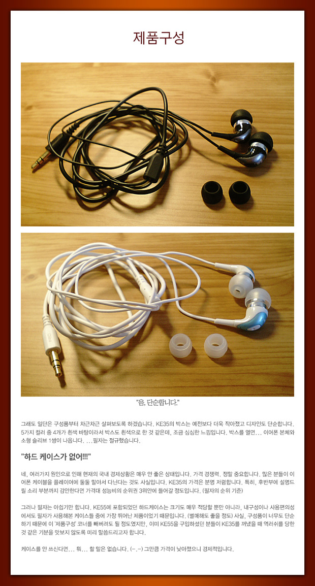 도군요. 모델 넘버가 낮다고 하여 무조건 마이너가 아니듯, KE35는 더 낮은 가격과 단순한 구성품을 갖고도 전작을 뛰어넘는