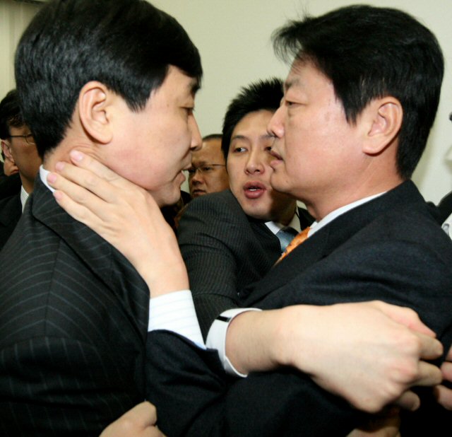 URL복사 기사공유하기 스크랩 프린트 메일보내기 글씨키우기 "이 사람들 국회의원 맞소?" 한나라당 한선교 의원과 민주당 이종걸 위원이 3일 국회 문방위에서 몸싸움을 벌이고 있다. 시장통에서도 볼 수 없는 험악한 장면을 연출하고 있다.(사진=연합뉴스) 저작권자 © 소비자가 만드는 신문 무단전재 및 재배포 금지 조창용 기자 다른기사 보기 URL복사 기사공유하기 주요기사 SK텔레콤, '1인당 10만원' 보상안 불수용..."재무적 부담 감당 어려워" 위메이드, 원화 스테이블코인 전용 ‘스테이블넷’ 테스트넷 공개 크래프톤, ‘배틀그라운드 모바일’·‘킹 오브 파이터즈’ 컬래버레이션 진행 하나증권 지난해 순이익 2120억 원…전년 대비 6% 감소 금융투자협회 조직개편 단행, K자본시장본부·대외협력부 신설 함영주 하나금융 회장 "비은행 수익성 회복되면 ROE 12% 도달 가능"