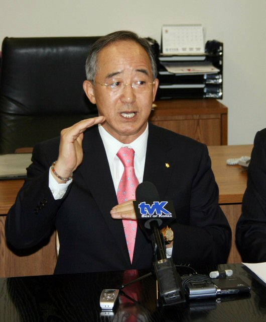 동국대 오영교 총장이 5일(현지시각) 미국 로스앤젤레스(LA) 동국로얄대에서 기자간담회를 열어 동국대 LA캠퍼스(DULA)의 운영 계획을 설명하고 있다.