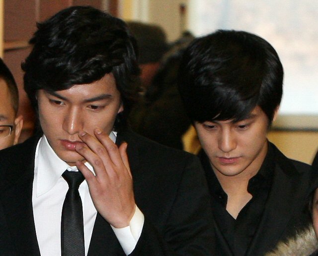 KBS 2TV 월화드라마 ‘꽃보다 남자'에서 써니 역으로 출연했던 탤런트 故 장자연의 빈소가 마련된 경기도 분당 서울대병원 장례식장에 8일 오전 이민호(왼쪽), 김범이 조문을 마치고 침통한 표정으로 나오고 있다.