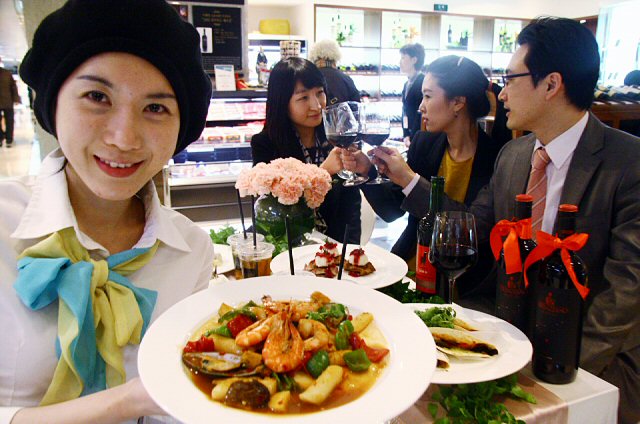 롯데백화점이 10일 서울 중구 소공동 본점에서 가정내 소규모 파티 및 모임에 어울리는 음식들을 전문적으로 판매하는 키친테이블 매장을 선보여 눈길을 끌고 있다.