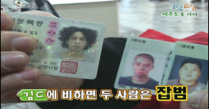 지난 8일 KBS '해피선데이-1박 2일' 에서는 제주도를 가다를 방송에서 강호동과 은지원, 김C는 자신들의 주민등록증을 공개, 오래 전 사진으로 시청자들에게 웃음을 선사했다.