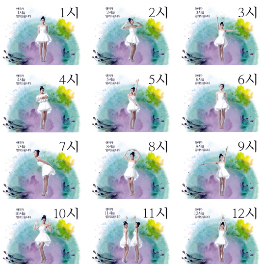 하얀 미니 원피스 차림으로 등장한 김연아는 ‘스크린세이버’를 통해 재미있는 ‘숫자 포즈’를 선보인다. 시간마다 깜짝 등장해 1부터 12까지 숫자를 연상케하는 포즈를 연출한 것이다.