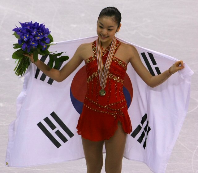 김연아는 "그동안 시상대에 서서 애국가를 들으면 눈물이 나오려고 했는데 꾹 참아왔다.하지만 오늘은 너무 기다렸던 자리여서 눈물을 흘리고 말았다"라고 말했다.(사진=연합뉴스)