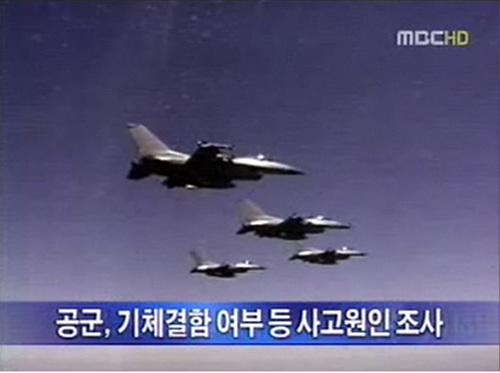 KF-16 전투기는 공군이 차세대 전투기 사업의 일환으로 도입해 미국의 F-16 기를 국산 조립한 것이다. 대당 가격은 무려 4300만 달러. 1994년 도입 이후 지금까지 6차례 추락 사고를 일으킨 바 있다.(사진-MBC)