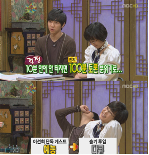 '1박2일의 허당' 이승기 선생이 이선희 선생님을 구원하기 위해 MBC황금어장 '무릎팍도사'를 찾았다.
