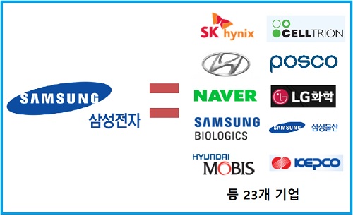 SK하이닉스(부회장 박성욱)와 셀트리온(회장 서정진), 현대자동차(회장 정몽구), 포스코(회장 권오준), 네이버(대표 한성숙), LG화학(부회장 박진수), 삼성바이오로직스(대표 김태한), 삼성물산(대표 이영호‧고정석‧정금용), 현대모비스(대표 임영득), 한국전력(사장대행 김시호) 등 나머지 19개 기업들의 영업이익을 다 합쳐도 삼성전자가 지난해 벌어들인 영업이익에는 3조4036억 원이 부족하다.