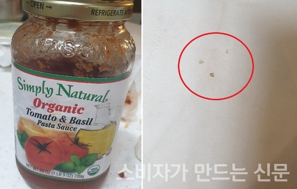 세트로 샀던 두 병은 아무 문제가 없었는데 지난 12월 마지막 병에 든 소스로 만든 파스타에서 문제가 발생했다. 김 씨가 초등학생인 자녀 점심으로 코스트코에서 산 파스타 소스와 면으로 스파게티를 만들었는데, 자녀가 먹다가 이상한 게 씹힌다고 말했다.