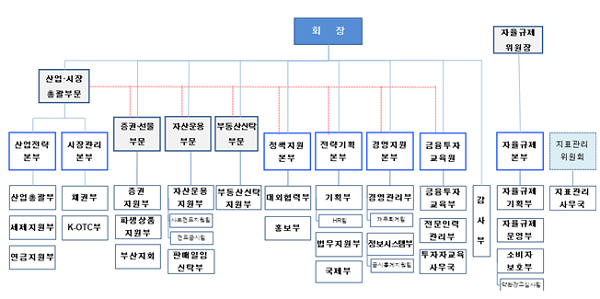 '산업·시장총괄 부문' 산하에 '산업전략본부'를 신설해 업권간 이해상충 조정 및 전체 금융투자산업 차원에서의 고ㅇ통 전략방향 수립 및 대응을 주도하고 업계 공통의 세제 및 연금 이슈도 담당하도록 했다.