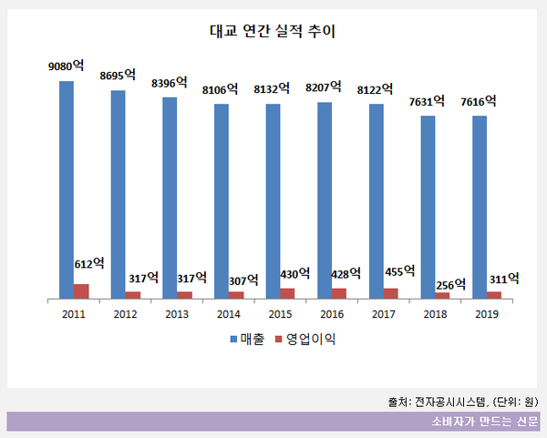 대교 측은 학령인구(6세~21세) 감소가 매출 규모 축소의 주된 원인이라고 설명했다.