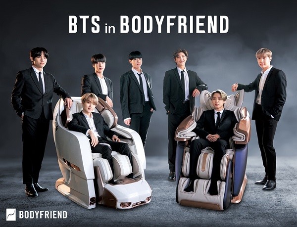 이와 함께 바디프랜드는 BTS와 함께 하는 가족 건강 캠페인 ‘BTS in BODYFRIEND’ 프로모션을 진행한다. 바디프랜드 안마의자 렌탈 혹은 구매 시, 전체 멤버 싸인이 들어간 브로마이드와 포토카드를 증정(별도 택배발송)한다.