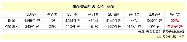 에이블씨엔씨는 2016년 4346억 원에 달했던 매출이 2년 연속 하락해 2018년에 3455억 원으로 급감했고, 같은 기간 영업수지도 243억 원 흑자에서 190억 원 적자로 크게 악화됐다. 지난 2017년 중국 사드 보복 이후 경기가 악화된 상황에서 H&B스토어의 성장으로 시장을 뺏긴 탓이다.