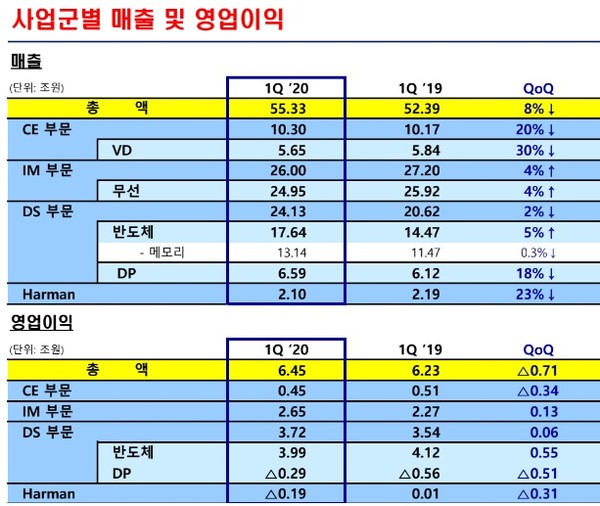 삼성전자는 2분기에 주요 제품 수요에 대한 코로나19 영향이 본격화되면서 실적 하락이 예상된다고 밝혔다.