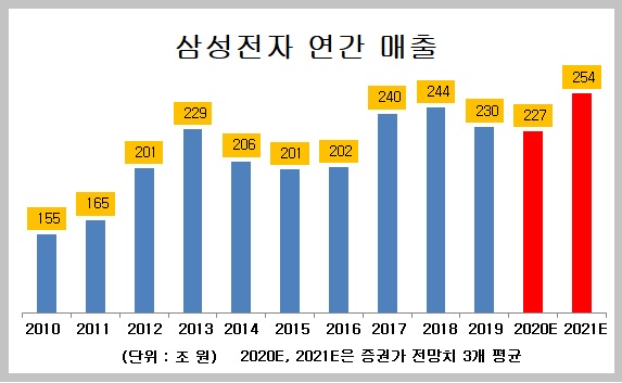 에프앤가이드와 하나금융투자는 삼성전자가 2021년 260조 원에 육박하는 매출을 올릴 것으로 본다. 한화투자증권은 244조3000억 원으로 상대적으로 낮게 전망하고 있는데, 이 역시 달성된다면 사상 최대 매출이다.
